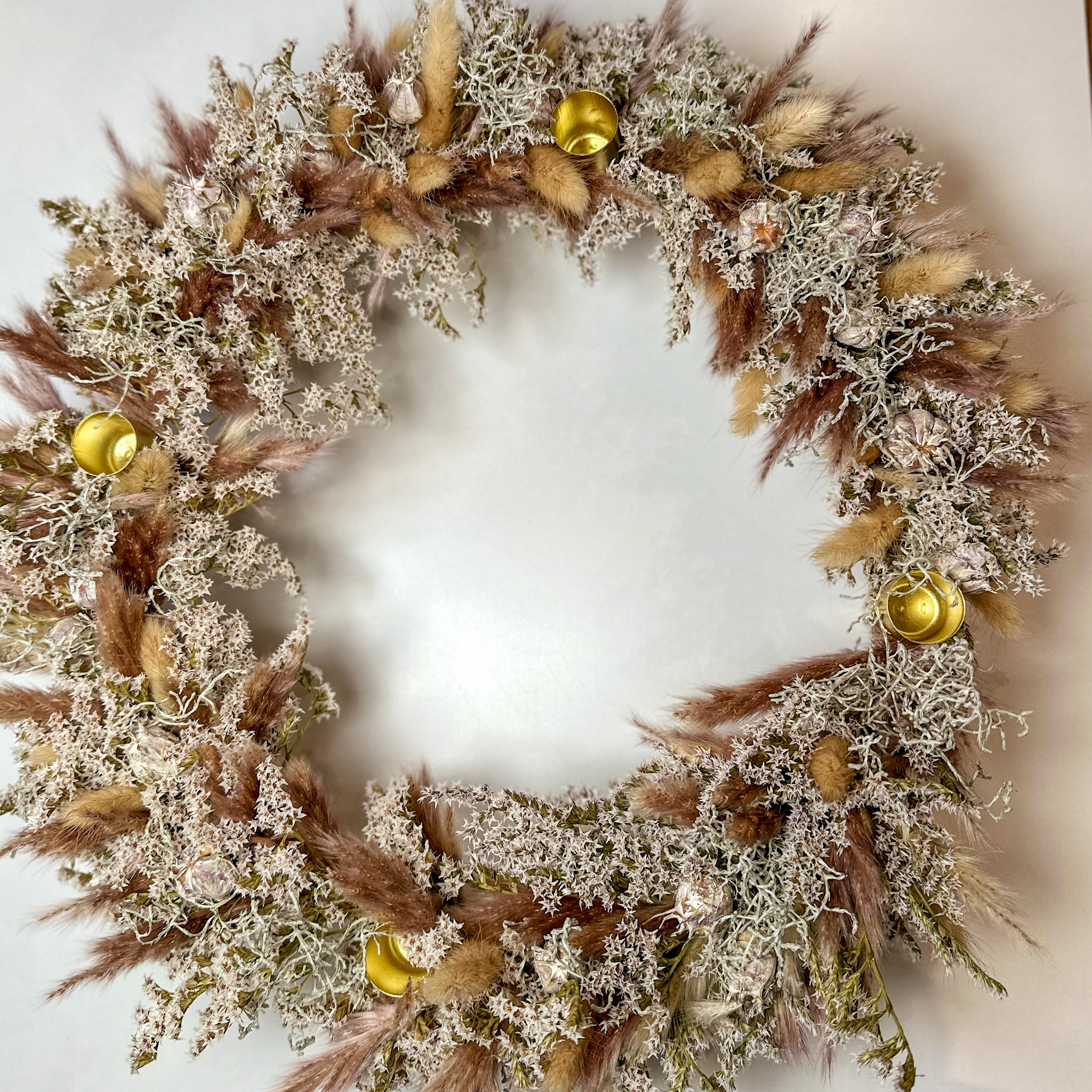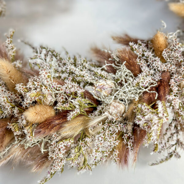 Verwendete Blumen: Trockenblumen – Mix, Tartaricum Statice, Lagurus, Nigela, Pampas, Calocephalus